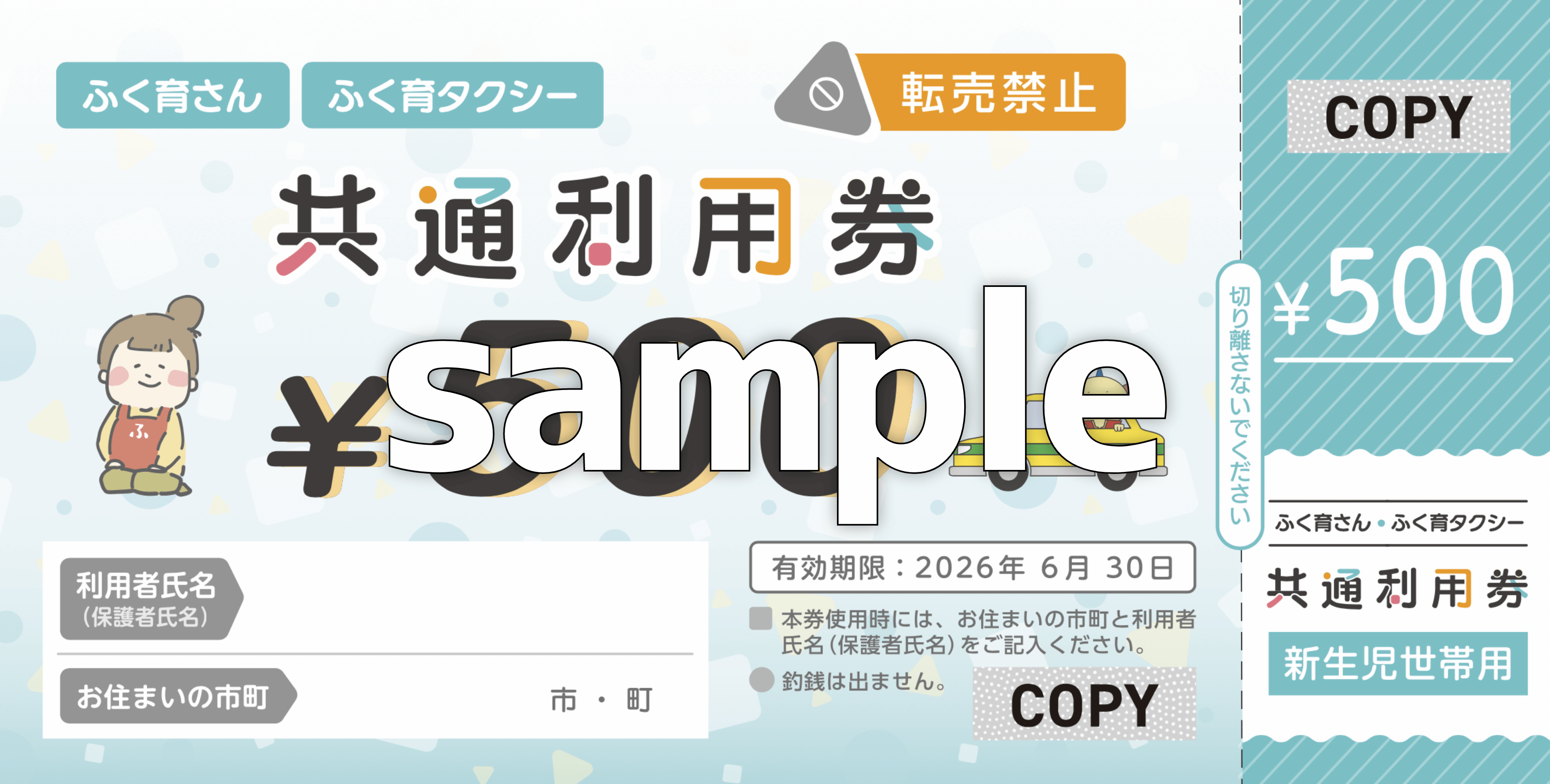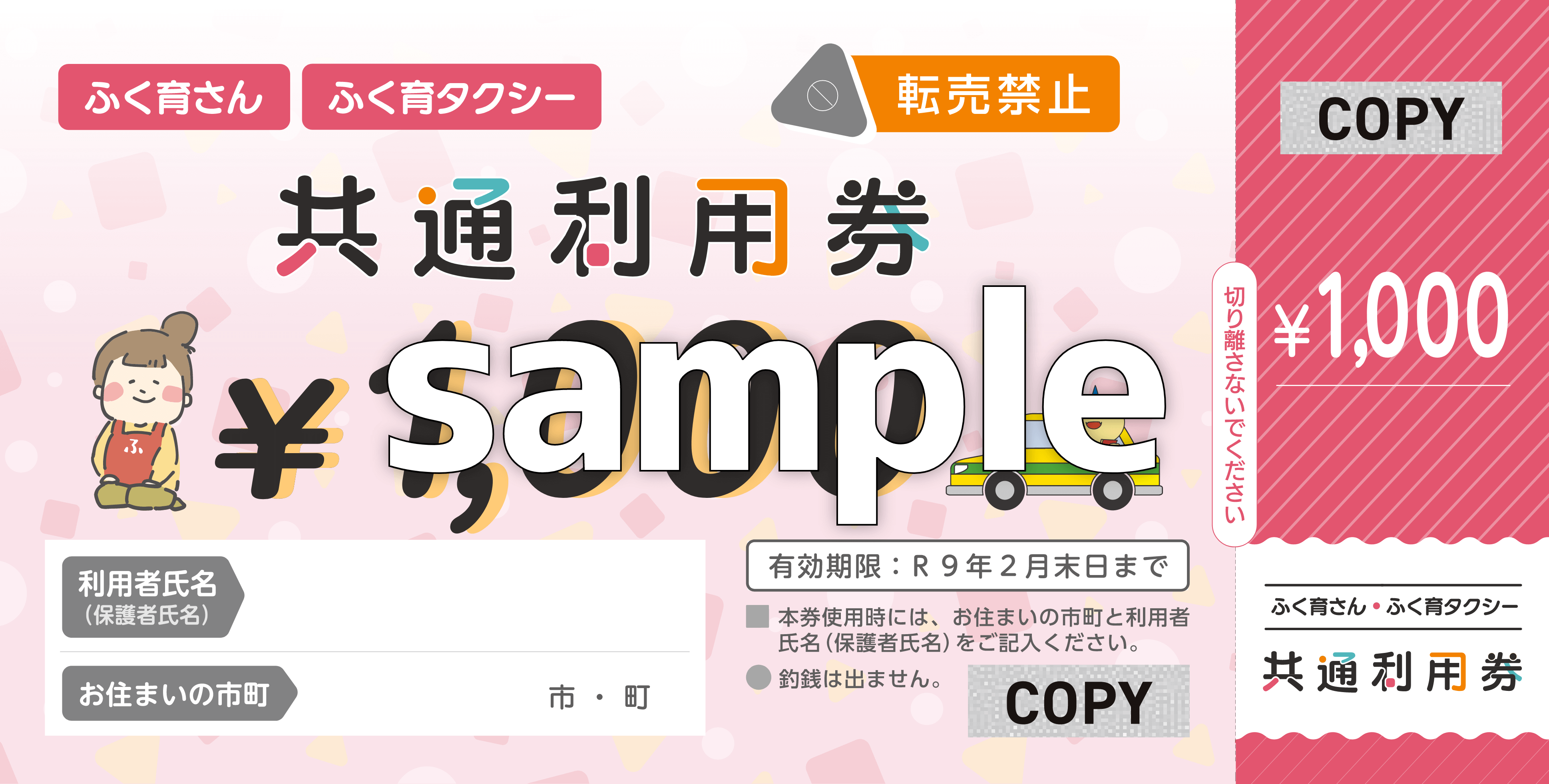 1,000円分の「ふく育サービス」共通利用券