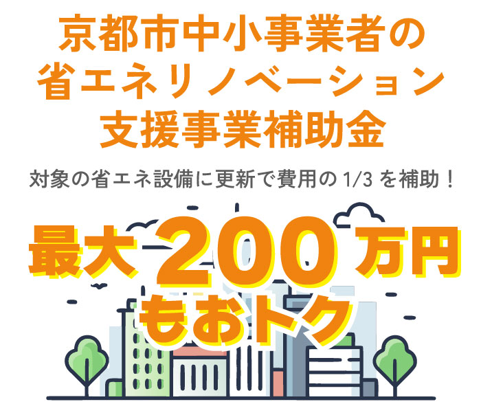 京都市内の中小事業者の光熱費の負担軽減とあわせて、CO2排出量の削減を促進するため、省エネ設備への更新に係る費用の一部を補助します。